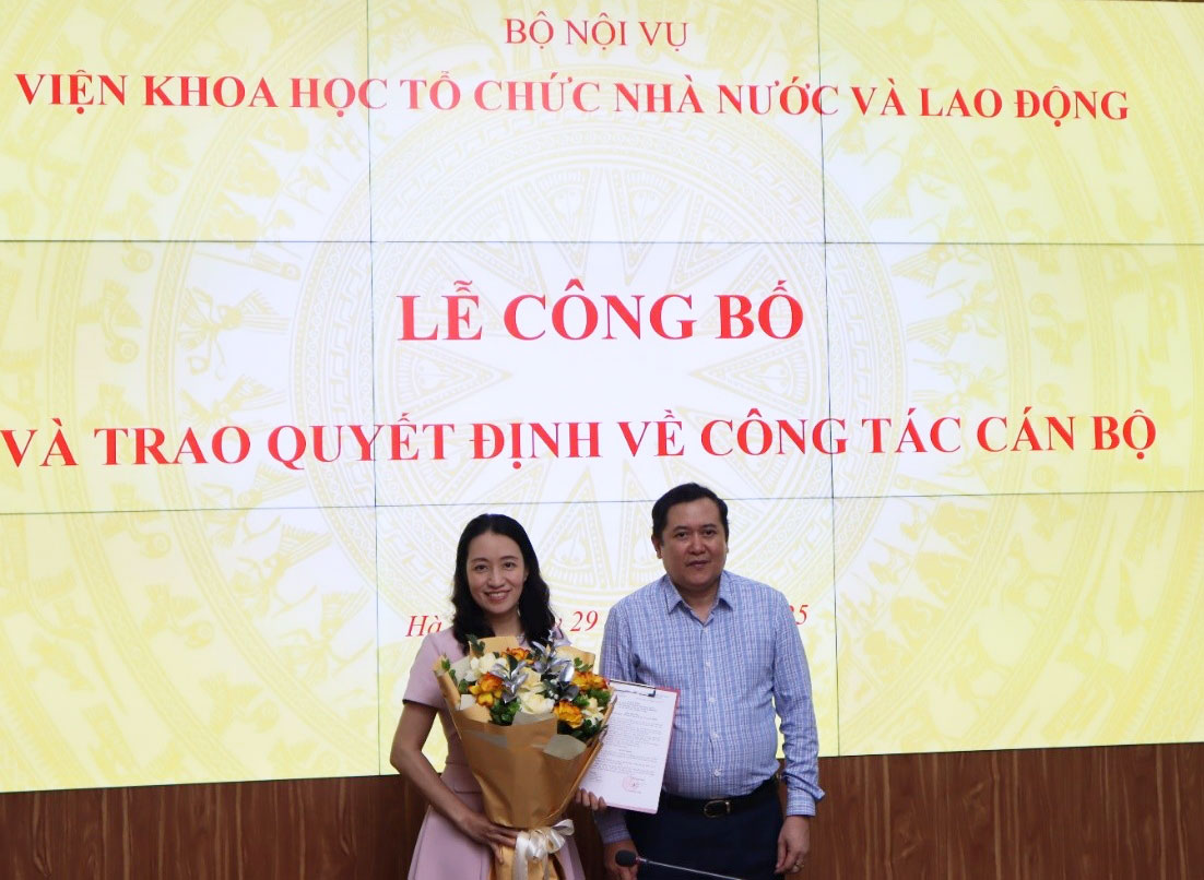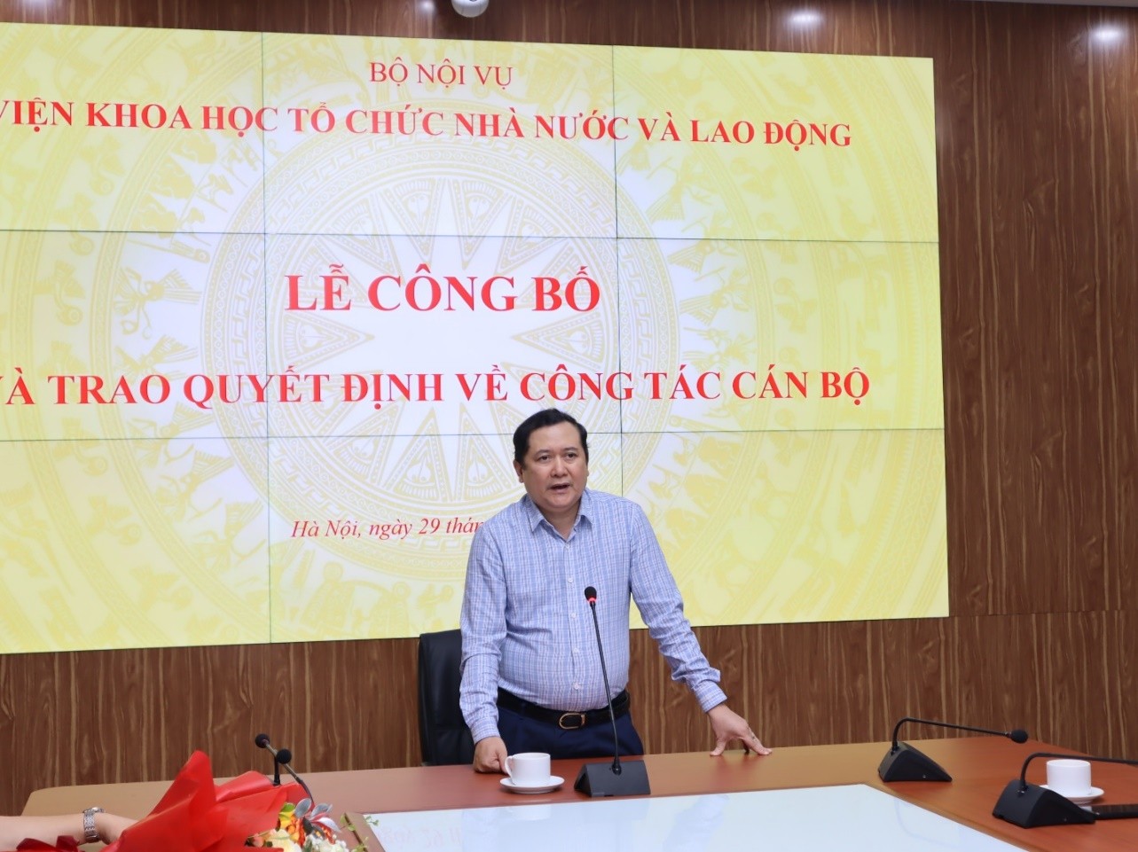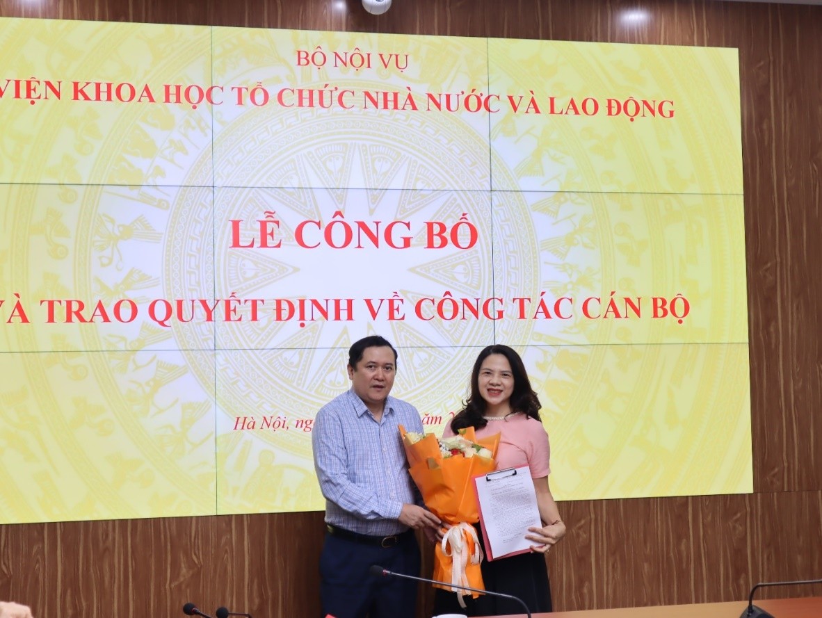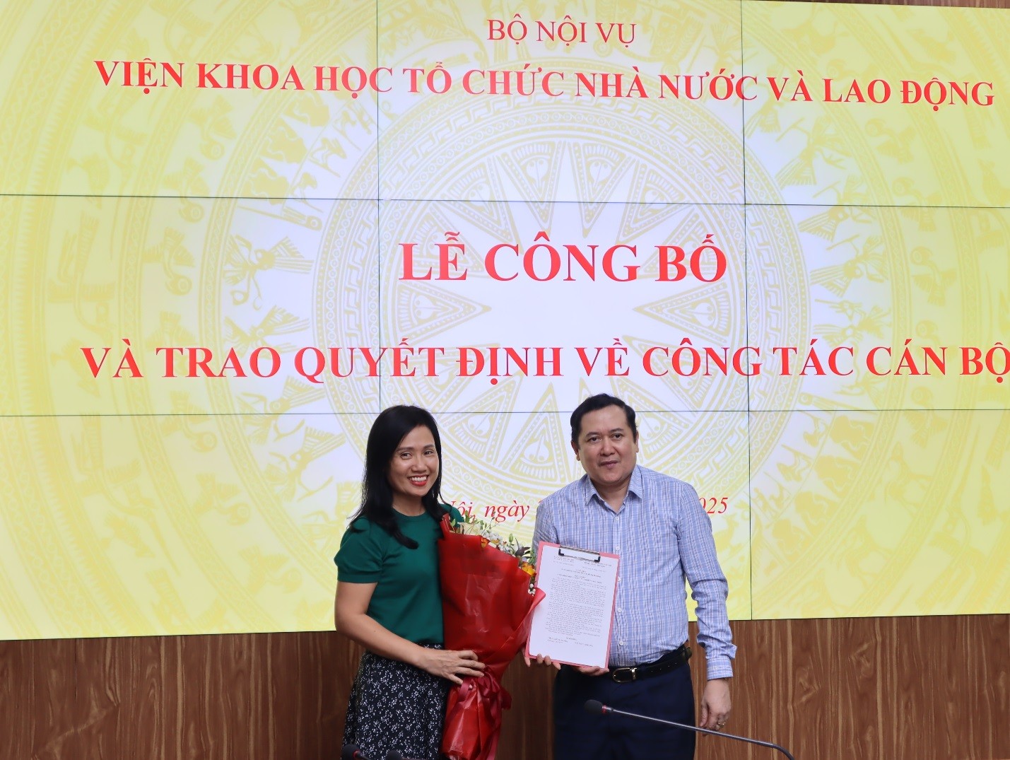 Chiều ngày 29/8/2025, tại trụ sở Bộ Nội vụ (37 Nguyễn Bỉnh Khiêm, Hà Nội), Viện Khoa học Tổ chức nhà nước và Lao động (Viện) tổ chức Lễ công bố và trao các quyết định về công tác cán bộ. Tham dự buổi Lễ có các đồng chí Lãnh đạo Viện, Đại diện lãnh đạo các đơn vị thuộc Viện, đại diện Ban Chấp hành Đảng ủy, đại diện Đoàn Thanh niên Viện.