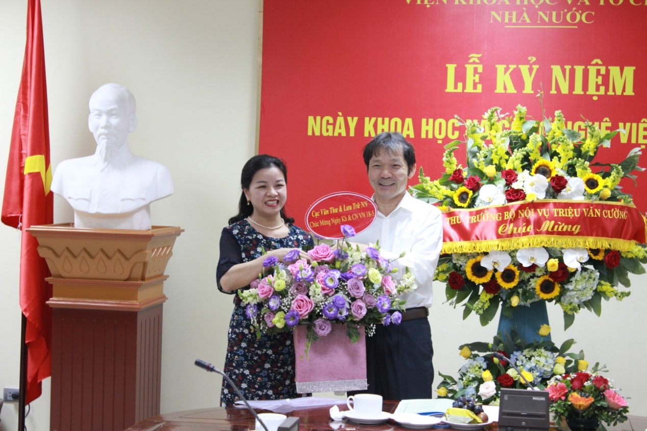 Tham dự Lễ kỷ niệm có đồng chí PGS.TS. Triệu Văn Cường - Thứ trưởng Bộ Nội vụ; đồng chí Phạm Đình Lộc - Phó Vụ trưởng Vụ Tổ chức cán bộ; đồng chí Nguyễn Thị Nga - Phó Cục trưởng Cục Văn thư và Lưu trữ nhà nước cùng toàn thể lãnh đạo, viên chức thuộc Viện KHTCNN.