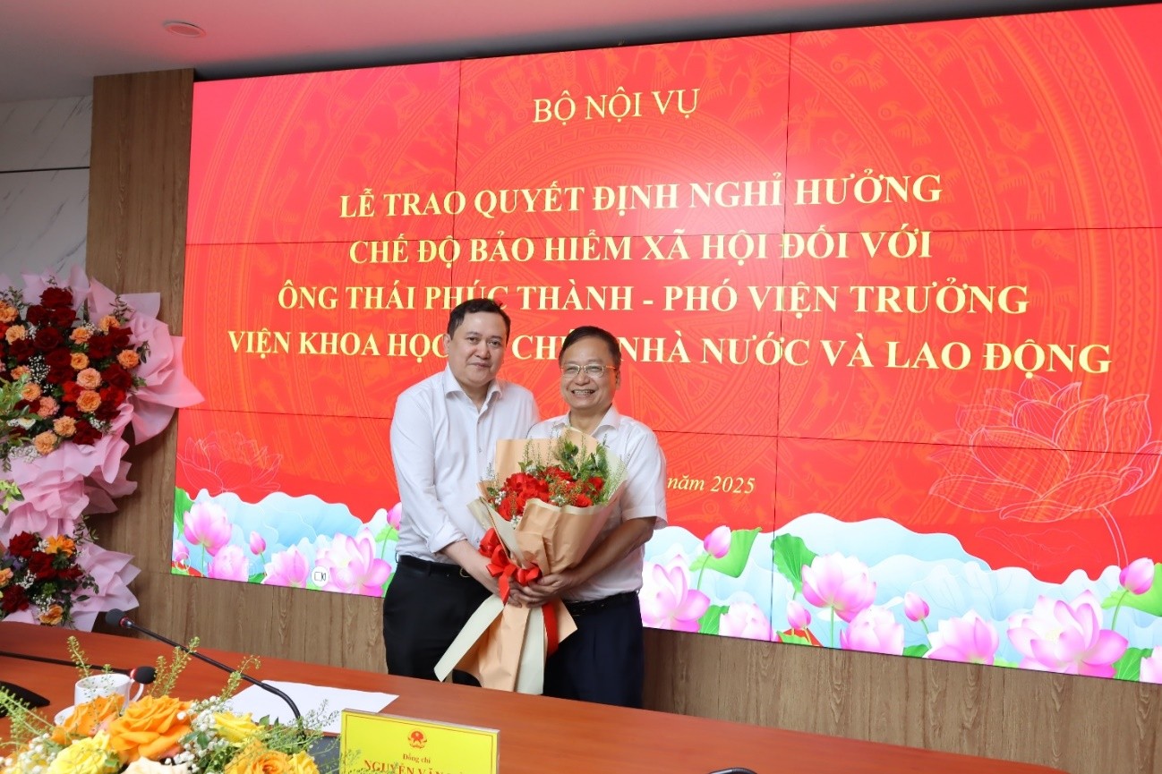 Chiều ngày 30/5/2025, Tại trụ sở Bộ Nội vụ, số 37 Nguyễn Bỉnh Khiêm, Hà Nội, Bộ Nội vụ đã long trọng tổ chức Lễ trao quyết định của Bộ trưởng Bộ Nội vụ về việc nghỉ hưởng hưu trước tuổi đối với ông Thái Phúc Thành, Phó Viện trưởng Viện Khoa học Tổ chức nhà nước và Lao động, Bộ Nội vụ.