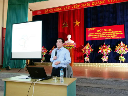 Ông Lê Anh Tuấn – Phó Viện trưởng Viện Khoa học tổ chức nhà nước trình bày các nội dung tập huấn