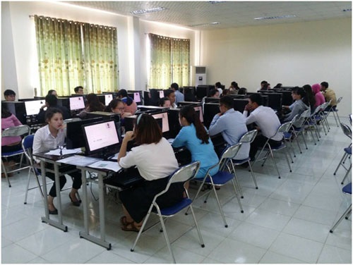 Các viên chức đang làm bài thi trắc nghiệm trên máy tính