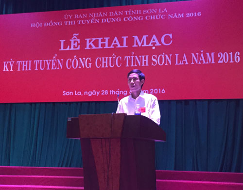Ngày 28/8/2016, tại trường Cao đẳng Sơn La, Hội đồng thi tuyển dụng công chức năm 2016 tỉnh Sơn La đã tổ chức lễ khai mạc kỳ thi tuyển công chức tỉnh năm 2016. Dự lễ khai mạc, về phía tỉnh Sơn La có bà Tráng Thị Xuân - Ủy viên Ban Thường vụ tỉnh ủy, Phó Chủ tịch UBND tỉnh, Chủ tịch Hội đồng thi tuyển công chức tỉnh, các thành viên trong Hội đồng thi, thành viên các Ban Giám sát, Ban coi thi và toàn thể thí sinh dự thi; về phía Viện Khoa học tổ chức nhà nước có ông Lê Anh Tuấn – Phó Viện trưởng cùng đoàn công tác của Viện tham dự.