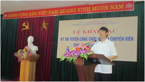 Từ ngày 17/5 đến ngày 21/5/2015, tại Trường Đại học Hồng Đức, Hội đồng tuyển dụng công chức ngạch chuyên viên năm 2015 tỉnh Thanh Hóa đã khai mạc và tổ chức thi tuyển các môn trắc nghiệm theo hình thức thi trên máy tính. Tham dự lễ khai mạc có đồng chí Nguyễn Đình Xứng, Phó Bí thư Tỉnh ủy, Chủ tịch UBND tỉnh Thanh Hóa; đồng chí Lê Anh Tuấn, Tỉnh ủy viên, Phó Chủ tịch UBND tỉnh, Chủ tịch Hội đồng tuyển dụng công chức tỉnh; Đoàn công tác của Viện Khoa học tổ chức Nhà nước do đồng chí Vũ Thị Hiền - Phó Viện trưởng làm Trưởng đoàn cùng toàn thể thành viên các Ban của Hội đồng thi và các thí sinh dự thi.